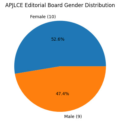 APJLCE 편집위원회는 학계의 성평등을 향한 지향을 분명히 드러냅니다. 현재 편집진은 여성 53%, 남성 47%로 구성되어 있으며, 이러한 조화는 편집 판단과 학문적 방향이 보다 다채롭고 공정한 시각 위에서 이루어지도록 뒷받침합니다.